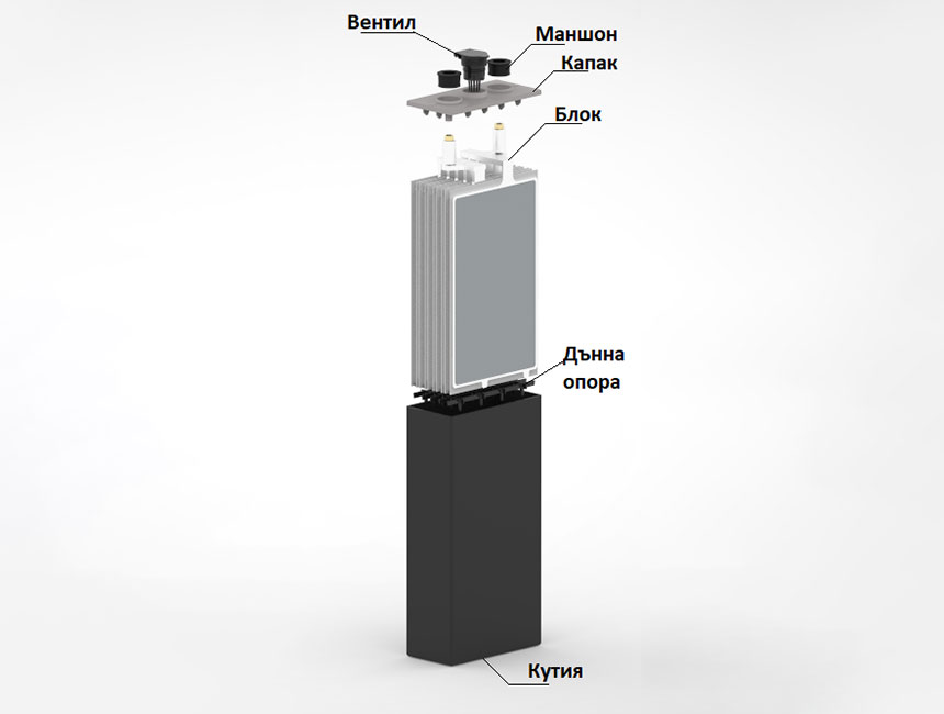 • Система за вентилация, обезпечаваща свободното отделяне на газове при работа на батерията и възпрепятстваща директното отделяне на сернокисели аерозоли.